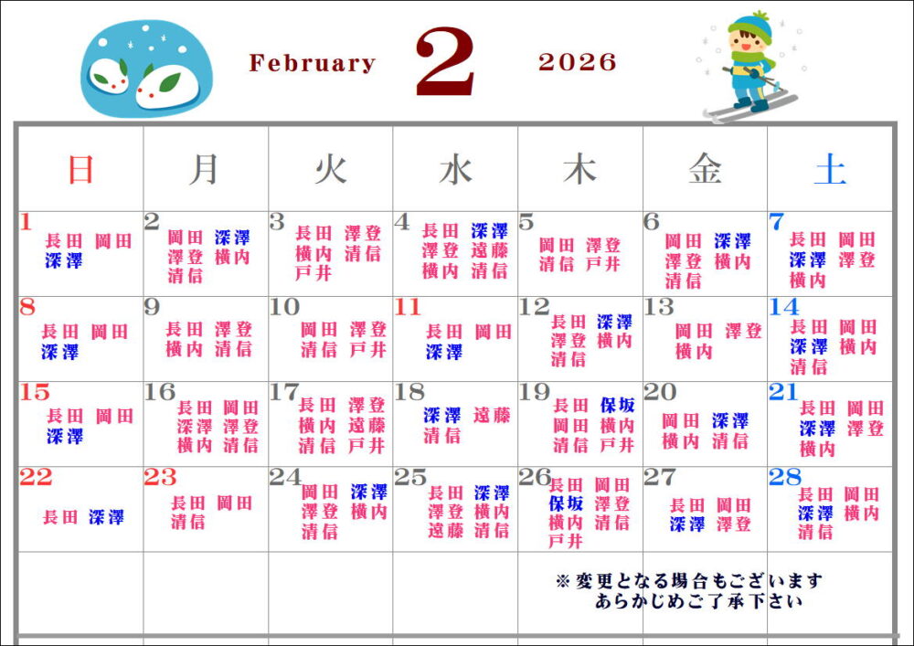 2月スタッフ勤務表になります。
